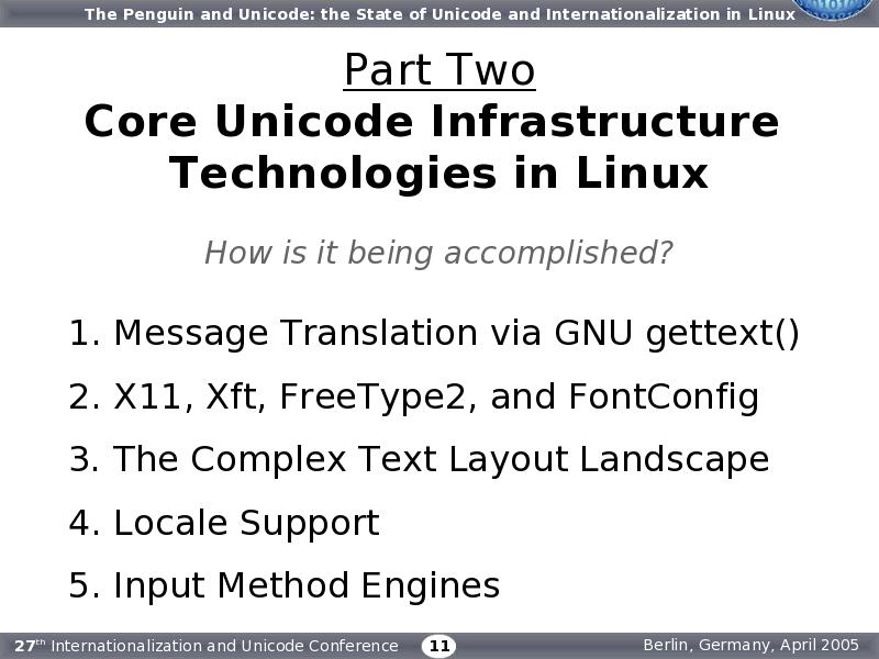 Here in Part Two we will look at the Unicode-based infrastructure in Linux that has facilitated the rapid globalization of this Open Source platform.